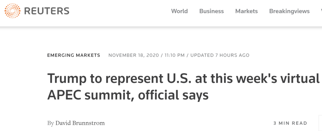 報道稱,一位不願透露姓名的美國官員説:“總統將出席APEC。”路透社提到,這將是特朗普自2017以來首次參加該活動。2018年,美國副總統彭斯曾代表美方出席APEC會議。