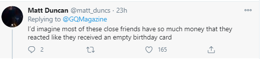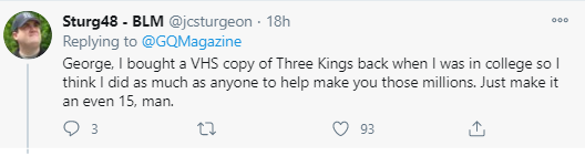 目前,在美國的社交網絡推特上,在喬治·克魯尼這段神奇的故事被GQ報道出來後,大量美國網民在被此事震驚之餘,還紛紛表示自己也在他早年間剛入行拍電影的時候就一直在支持他,算得上是他的“好朋友”,並希望成為他的“第15個朋友”。