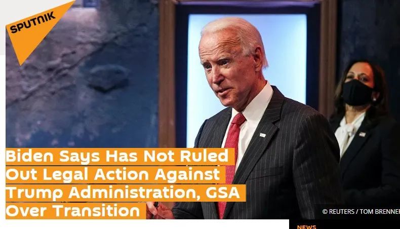報道稱,當天在新聞發佈會上,拜登被問及“是否不會排除對現任政府和美國總務管理局(GSA)提起訴訟”,而後者應為政權正式交接“開綠燈”。
