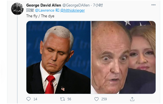 有網友聯想到之前美國副總統彭斯在電視辯論中那隻搶鏡的蒼蠅↓
