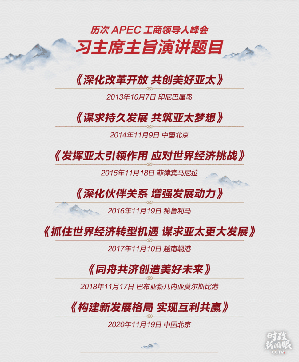 APEC工商領導人峯會有一個傳統,就是邀請包括中國在內的大國領導人發表演講。2013年以來,從印尼巴厘島到巴布亞新幾內亞莫爾斯比港,習主席曾連續六年出席APEC工商領導人峯會並發表主旨演講。今年是他第七次在這一場合發表演講。