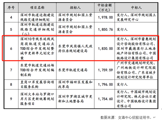 資料顯示,規劃設計行業的下游客户主要包括政府機構、地產公司、其他社會組織等,同業公司之間大多通過招投標的方式獲取訂單。多家公司參與同一項目招投標時通常就面臨直接的競爭。當然各方之間也有合作,比如交通中心招股説明書中披露的深圳10號線東延線項目,就有包括交通中心、蕾奧規劃等在內的4家企業中標。