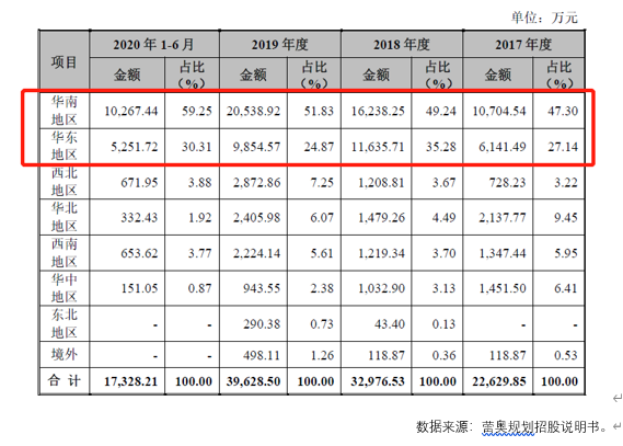 *蕾奧規劃**側重華南和華東,開啓全國範圍內的業務佈局。*下圖列出了蕾奧規劃的收入構成,其業務中心在華南地區,2020上半年佔比為59.25%;其次為華東地區,2020上半年佔比為30.31%。同時,蕾奧規劃還在積極拓展西北、華北、西南等全國各地區的業務。2020年上半年,蕾奧規劃前五大客户依次為南京江寧經濟技術開發總公司、佳兆業集團控股有限公司、東營市住房和城鄉建設管理局、萬科企業股份有限公司、深圳市龍崗區重點區域規劃建設管理署。可以看出,民營背景的蕾奧規劃業務佈局範圍更廣,對政府類客户的依賴程度也更小一些。