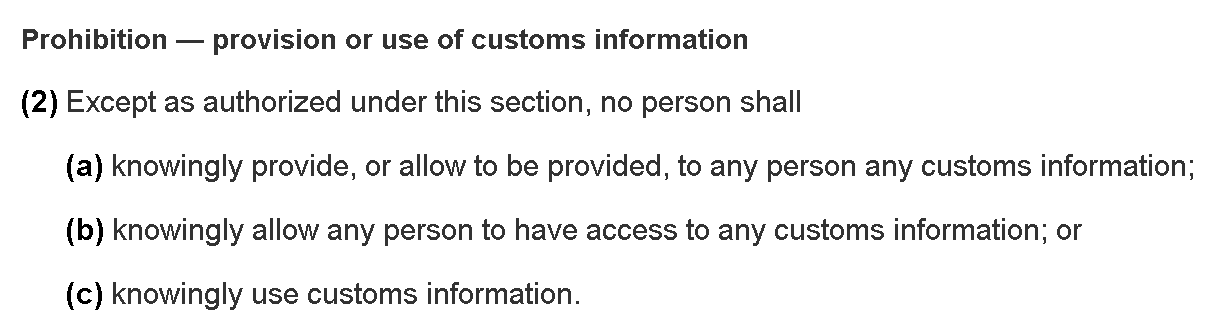 (a)故意將任何海關信息向任何人提供、或許可提供;