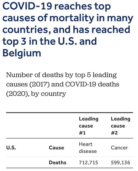 美國知名的凱撒家族基金會最新研究指出,目前新冠肺炎已經成為僅次於心臟病和癌症的美國第三大死亡原因。如果當前趨勢繼續下去,到新年前夜,死亡人數可能會達到30萬人。