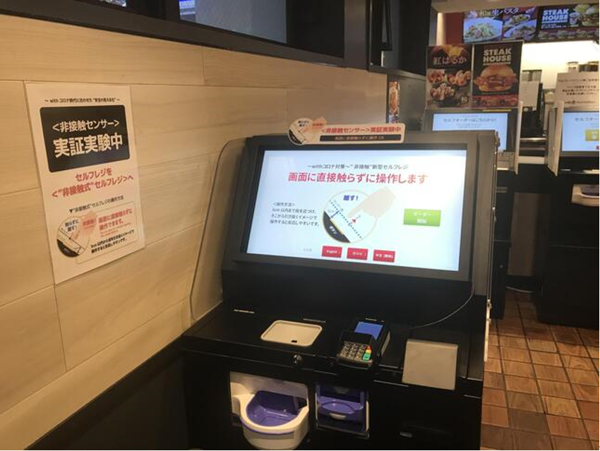 First Kitchen為減少店員和客人的接觸,早已在店內引入了觸屏式自助收銀機。這次又新進引入了“非接觸式觸摸屏”,並已在位於東京都世田谷區的温蒂漢堡下北澤店開始試用。