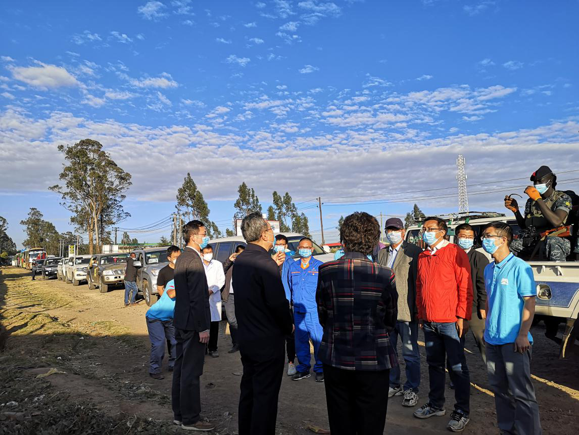 其間,使館先後成立兩支工作組,由使館領導帶隊,分赴東西兩線毗鄰交戰地區,組織接應撤離的中國公民,並協調安排埃塞軍警全程護送。趙志遠大使兩次赴首都郊外迎接撤離歸來中國公民,對大家致以親切慰問。