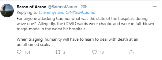 但也有人為科莫辯護,稱疫情在美國來得太猛烈了,而且紐約還是最先被疫情衝擊到的地方,人口又多,他能做到這樣已經不錯。