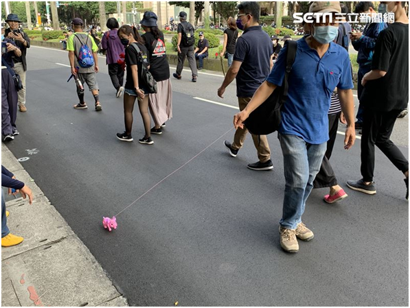 據台灣“三立新聞網”報道,現場有不少民眾自制與豬相關的標語或道具,更有人牽着一隻粉紅色的玩具小豬在街上走,引來大量羣眾圍觀拍照 ,該民眾打趣地説:“很漂亮吧!但只能看,不能摸也不要靠近,因為有毒。”↓