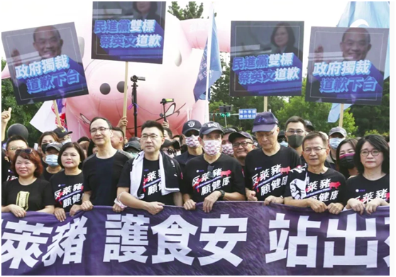 台媒消息稱,島內一年一度的*“秋鬥”遊行今日(22日)下午1時正式登場* ,除了40多個民間團體之外,國民黨、民眾黨也分別號召支持者到場參與,國民黨現任黨主席江啓臣、前主席馬英九、吳敦義和朱立倫,以及藍營14縣市負責人、國民黨“立委”走上街頭,“反萊豬(含瘦肉精豬肉)、反雙標”。