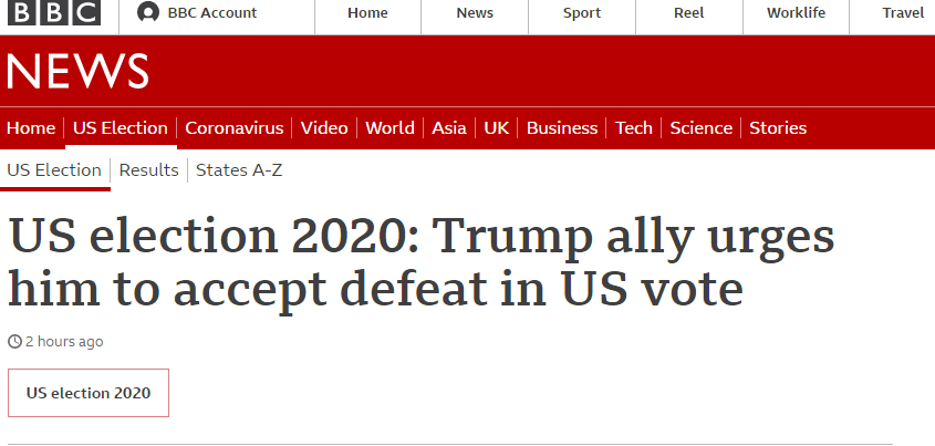 特朗普重要盟友:大選已有結果,特朗普團隊的做法“令國家難堪”