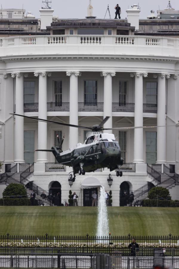 在美國首都華盛頓,美國總統特朗普乘直升機離開白宮。(新華社)