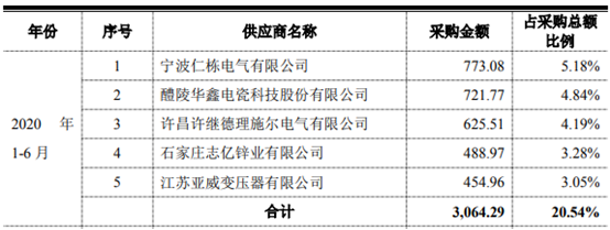 此外,根據招股書披露,“寧波仁棟電氣有限公司”是金冠電氣的主要供應商,今年上半年還是金冠電氣的第一大供應商。今年10月,國家電網公司電子商務平台發佈了《國網冀北電力有限公司關於供應商不良行為處理情況的通報(2020年9月)》。處理結果顯示,寧波仁棟電氣有限公司供應的10千伏柱上變壓器成套設備經檢測發現一般質量問題,在冀北公司集中規模招標相應物資標包中暫停中標資格6個月。