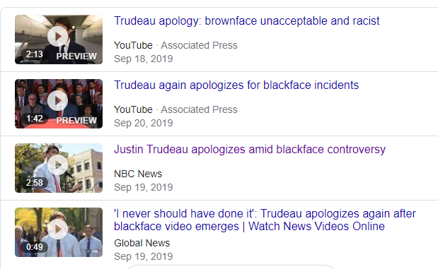圖為去年加拿大總理特魯多在被發現曾在中學時代扮演黑人後,數次公開道歉的場景