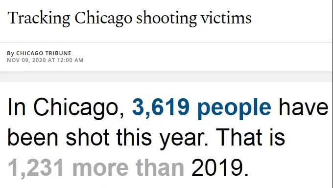 △《芝加哥太陽報》:截至11月9日,芝加哥今年已有3619人遭槍擊,比去年全年還多1231人