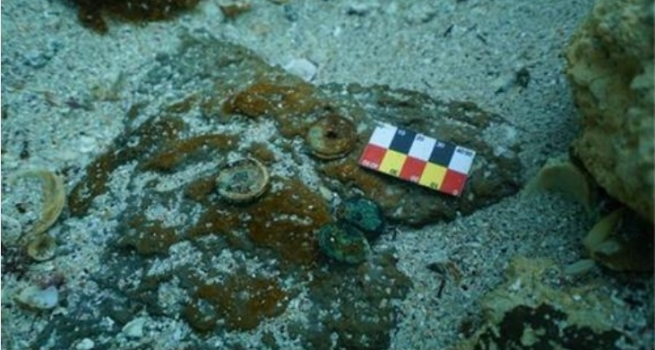 濟州道新昌裏海域發現中國古代硬幣 圖源:韓聯社轉自韓國國立海洋文化財研究所