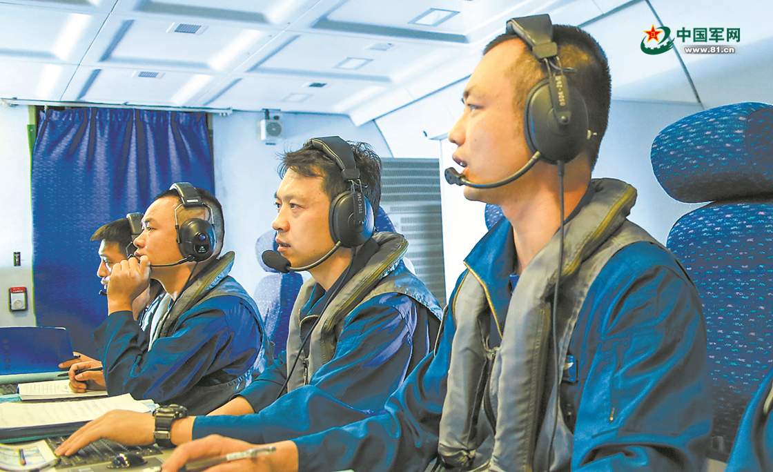 任務艙內,雷達觀察員對“敵情”信息和水面目標活動情況仔細篩選研判,為偵別目標提供支援。