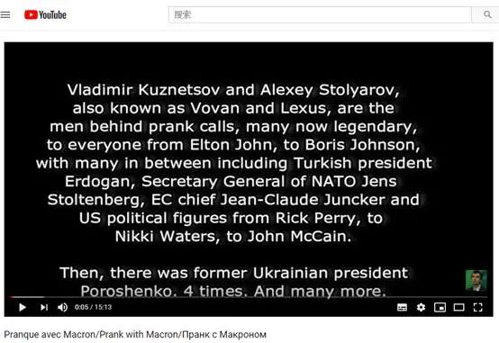 當天,他們在電話中冒充前不久才當選烏克蘭總統的弗拉基米爾•澤連斯基,給馬克龍打了電話,並在視頻網站“YouTube”和臉書上發佈了電話錄音。