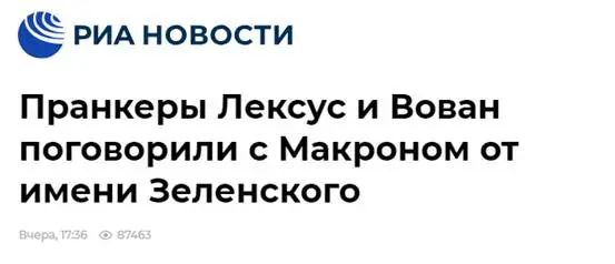 馬克龍真被涮了嗎?俄新社2019年4月24日報道了一則匪夷所思的消息:*兩個在俄羅斯出了名的“惡搞者”冒充烏克蘭當選總統澤連斯基給法國總統馬克龍打電話,後者不僅接了,還聊了很深入的話題,直到掛了電話也沒發現被騙。*目前,暫未看到法國方面對此報道做出回應。