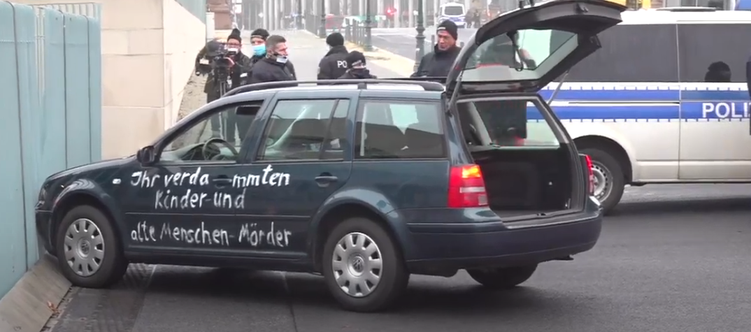 俄媒:默克爾將開“抗疫”會議之際,一輛汽車撞上她的辦公地大門