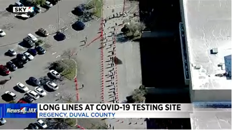 為了避免把病毒傳染給親友,人們在出行前後紛紛進行病毒檢測,各地都出現了排長隊的現象。在佛羅里達州的傑克遜維爾,從上週末開始,檢測點外就排起了長隊,很多人要排隊2個小時,有人甚至要等4個小時。如圖↓