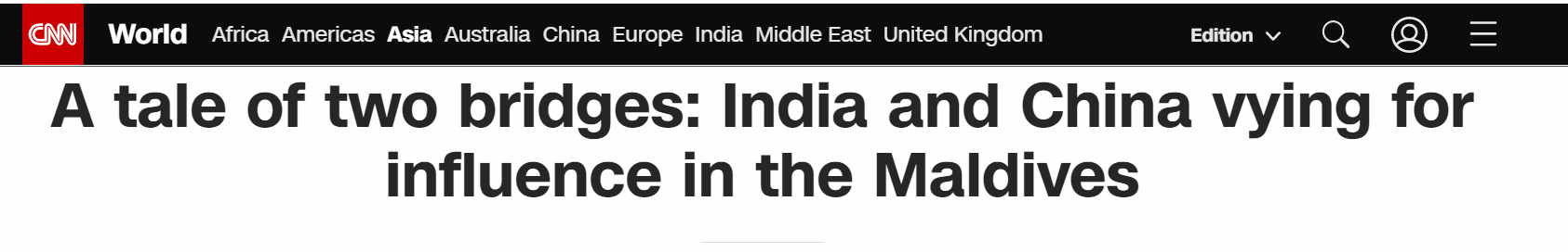 CNN稱,在這種情況下 ,印度今年8月份宣佈了一項5億美元的一攬子計劃,用於在馬爾代夫修建自己的大橋,此舉被廣泛認為是為了“對抗”中國日益增長的影響力。