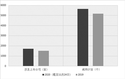 記者根據同花順數據統計,截至11月24日,今年共有1704家上市公司累計披露5646項減持計劃(剔除已停止實施的),減持總股數上限達456.03億股,其中已完成的減持計劃共2605項。今年以來減持計劃總數、涉及的上市公司家數均已超過去年全年。數據顯示,2019年全年發佈的減持計劃為5172項,涉及上市公司1522家。