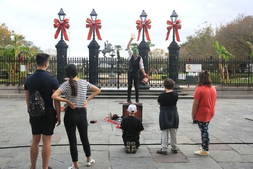 11月25日,在美國路易斯安那州新奧爾良,人們在街頭觀看錶演。新華社發(魏蘭攝)