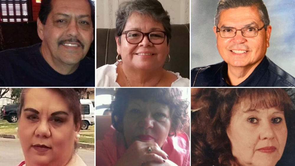 圖中為美國媒體所發佈的得克薩斯州女子邦妮·納傑拉因新冠而失去的6位親人,包括她的父母。(圖片來自網絡)
