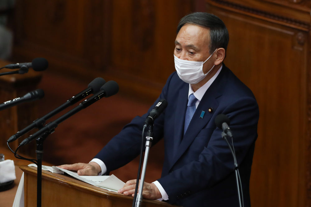 10月26日,日本首相菅義偉在國會發表施政演説。(新華社記者杜瀟逸攝)