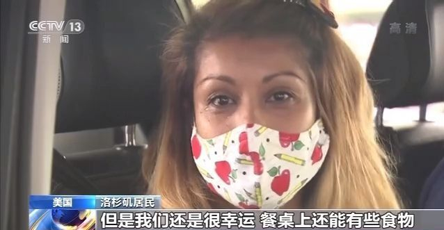 洛杉磯居民: 我家裏只有我一個人在工作,我的丈夫失業了,我們在學校當志願者,我還一直打零工。但是我們還是很幸運,餐桌上還能有些食物。