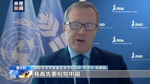國際農業發展基金亞太局局長 奈傑爾·佈雷特: 我首先要祝賀中國,中國的減貧成就是了不起的,我認為沒有其他任何國家能如此迅速,完成這樣一項影響深遠的事業,因此,中國減貧成就是卓越的,歷史性的。