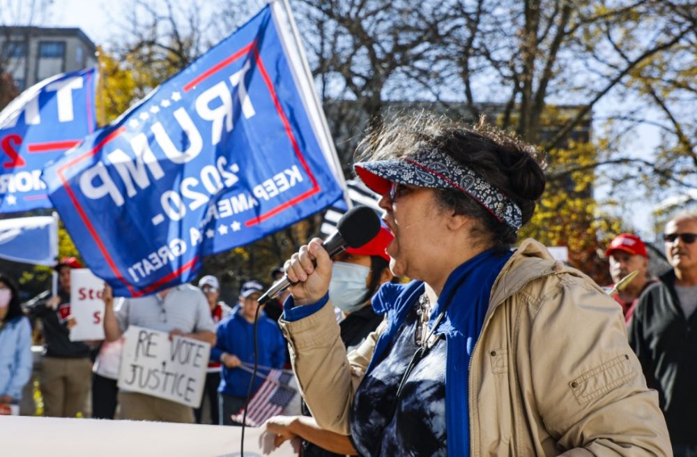 11月7日,部分特朗普支持者在美國威斯康星州麥迪遜示威。(新華社發,喬爾·萊納攝)