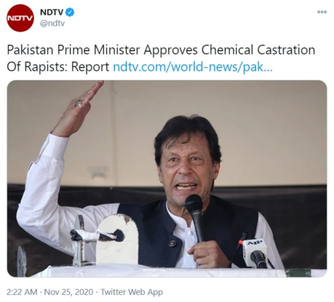 巴基斯坦總理批准化學閹割強姦犯,印度人聽後開始自黑