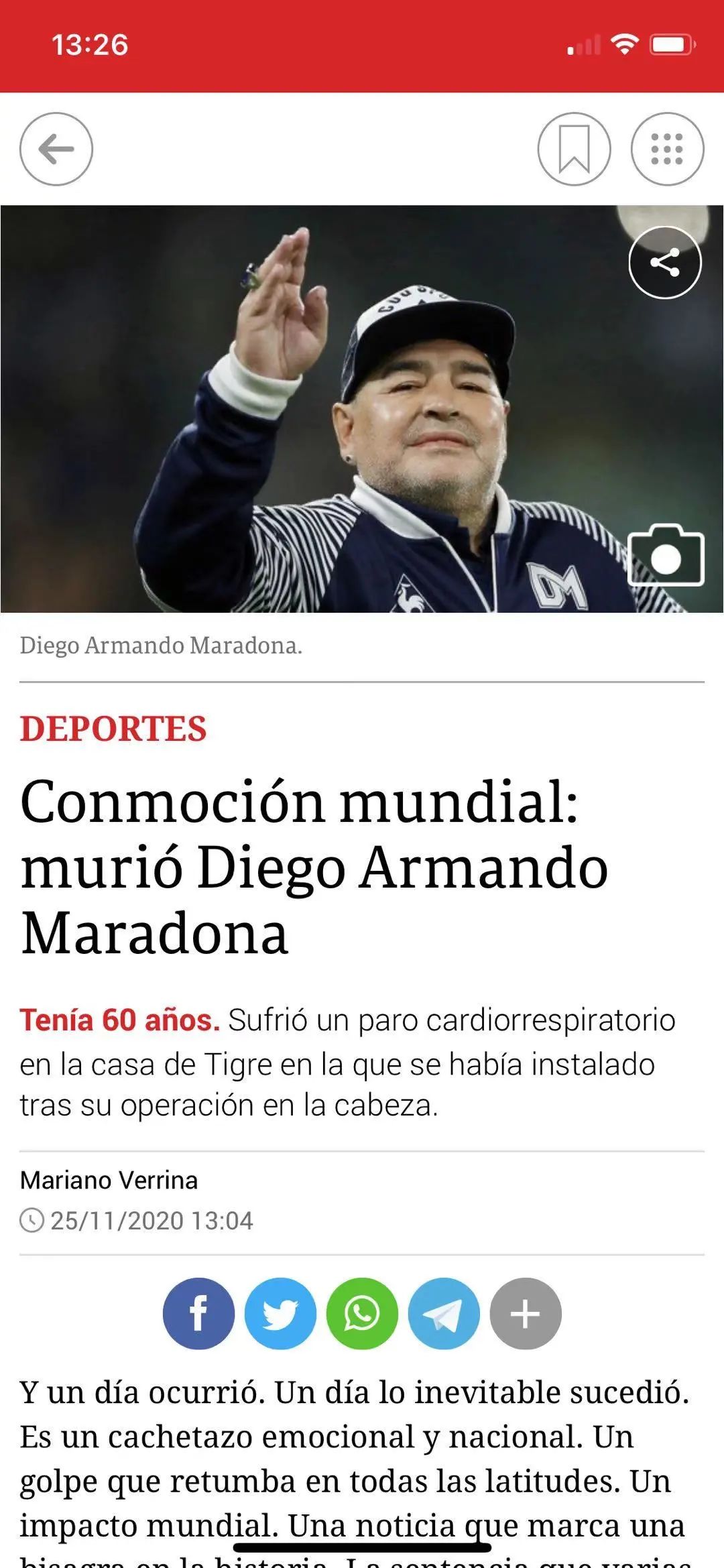 據阿根廷《國民報》報道,馬拉多納在25日上午在家中心臟驟停,共9輛救護車緊急前往救治,但他最終因救治無效去世。
