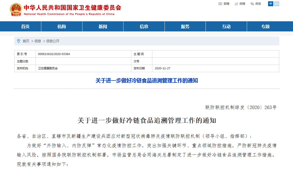 國家衞健委:對重點冷鏈食品進口商等進行排摸,掌握底數和情況
