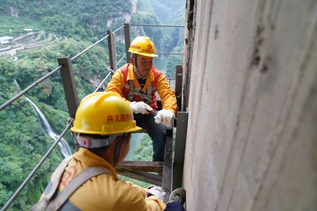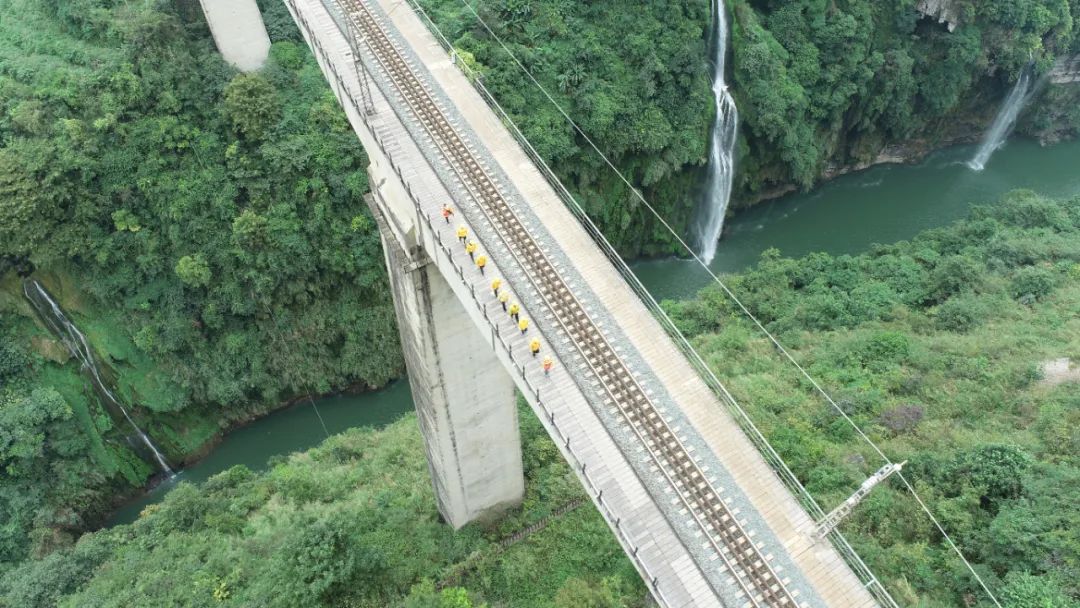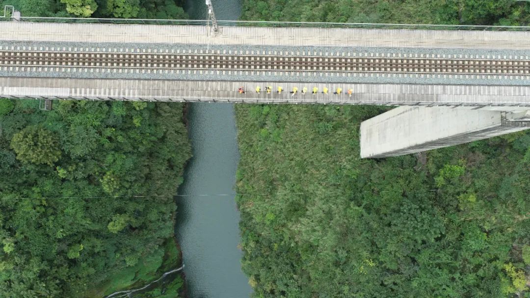“我是負責橋面安全防護的,每次列車呼嘯而過時,都感覺有一股大風迎面而來,要是再瘦點,列車帶起的風估計都能把我吹飛。”站在離谷底足足有65層樓高的橋面上,工區裏最年輕的女職工黃琳打趣道。
