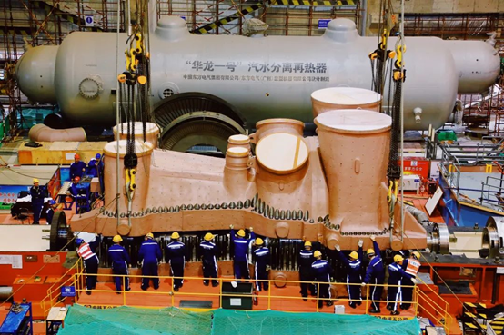 ▼ 2017年11月10日,首台蒸汽發生器成功吊至16.5米平台