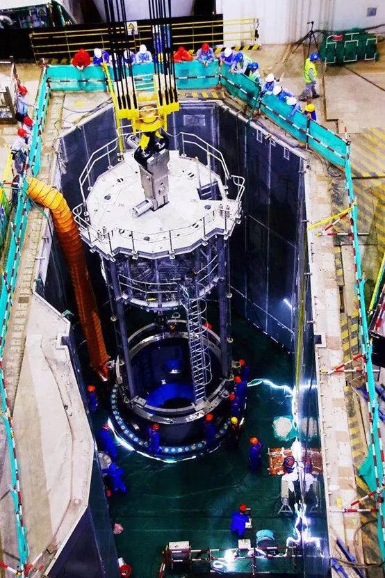 ▼ 2018年6月29日,堆內構件開始安裝
