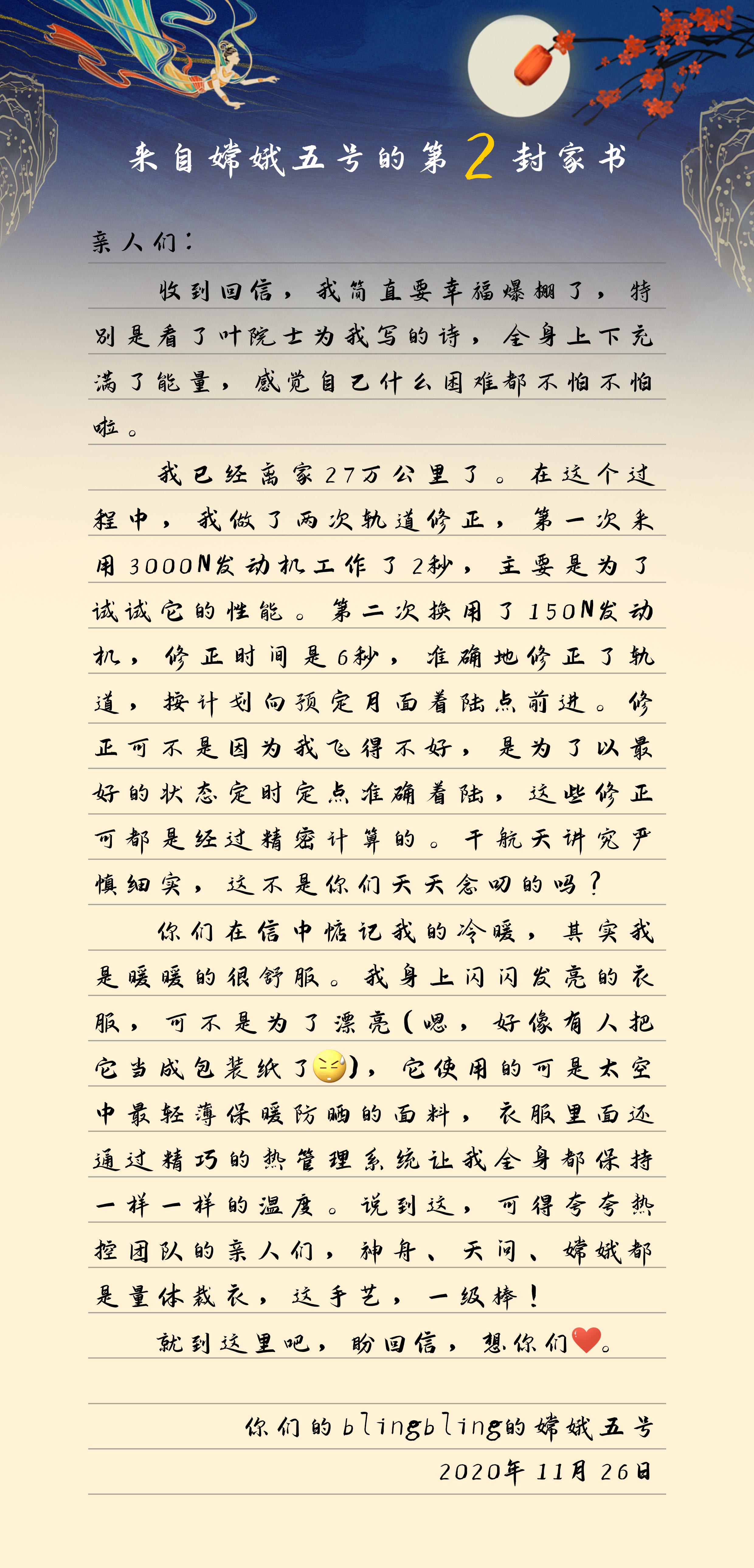 “blingbling的嫦娥五號”第2封家書:收到回信,我簡直要幸福爆棚了