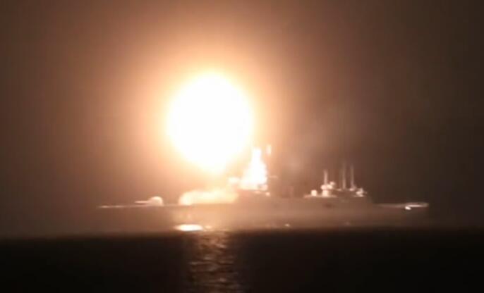 俄軍艦在夜間試射“鋯石”導彈畫面