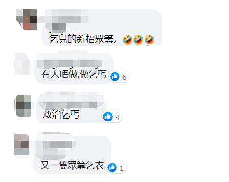 對於陳家駒賣慘眾籌,有香港網友罵他“有人唔做做乞丐”,有網友説這是“乞兒(行乞的人)的新招眾籌”。↓