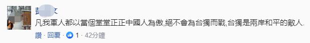 “軍人都以當個堂堂正正中國人為傲,絕不會為‘台獨’而戰,‘台獨’是兩岸和平的敵人。”
