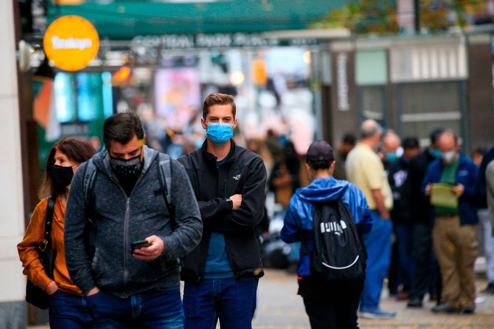 11月11日,在美國紐約,民眾在一處新冠病毒檢測點外排隊。(新華社/法新)