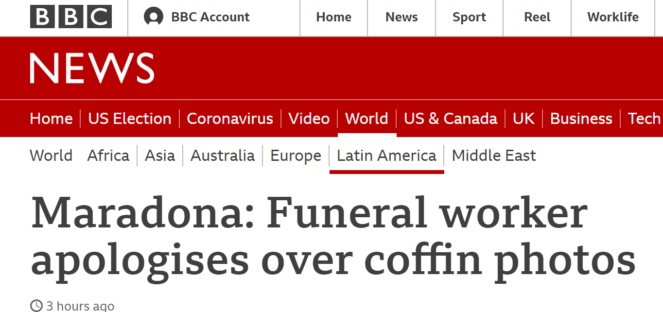 和馬拉多納遺體合影後,殯儀館員工道歉:瞬間做出拍照決定,請求原諒