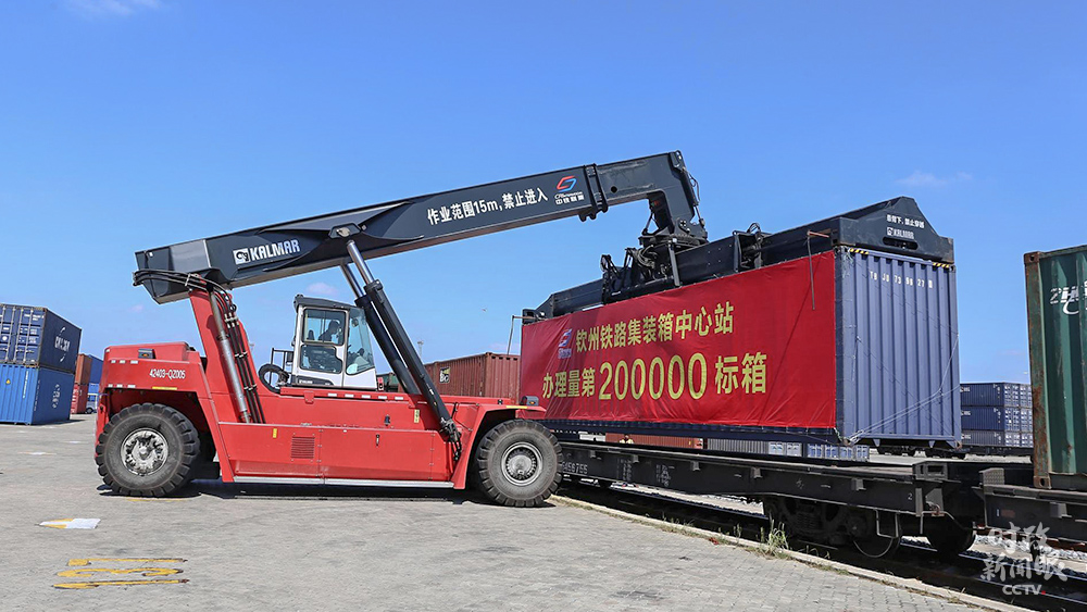 △今年,西部陸海新通道(欽州港)海鐵聯運集裝箱辦理量已突破20萬標箱,同比增幅達110%。欽州港是海運、鐵路、公路運輸無縫銜接的重要樞紐站。
