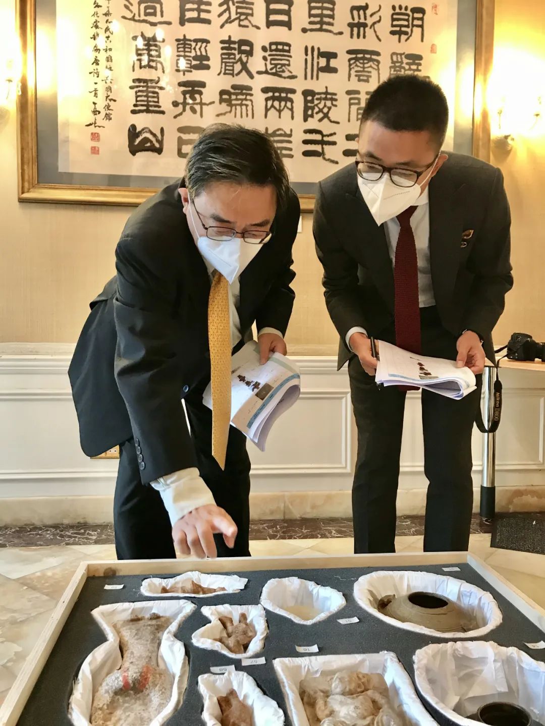 10月16日,根據劉曉明大使指示,中英雙方在文化處舉行了文物實體移交,完成了對文物的最後查驗清點工作,文化處一秘於果代表國家文物局、海斯探員代表倫敦大都會警察局簽署了文物接收確認書。