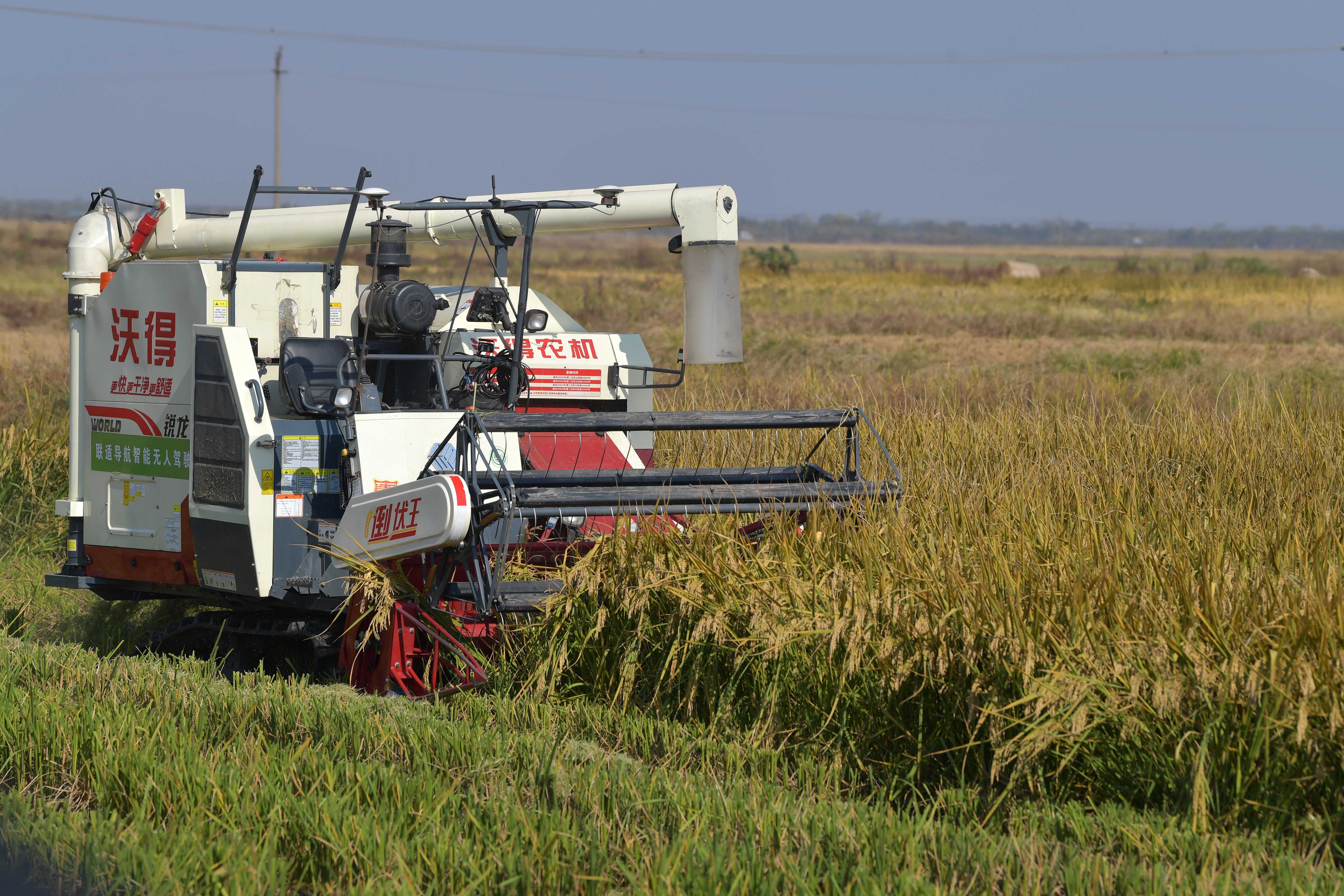11月14日,在江西省南昌縣蔣巷鎮大田農社智慧農場,無人收割機在現場演示水稻收割。
