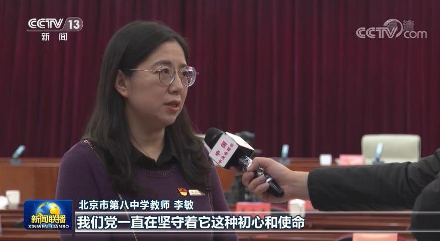 北京市第八中學教師 李敏: 我們黨一直在堅守着它這種初心和使命,那麼一直在為人民這個安康幸福,社會的和諧穩定做出了這種不懈地努力。作為一個政治老師呢,我們擔當的使命,就是要做一個學生有信仰這樣的一個引路人。