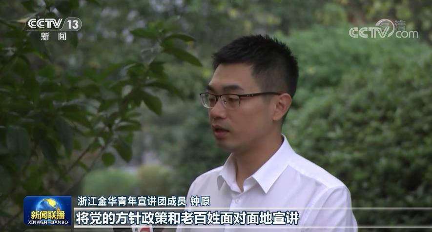 浙江金華青年宣講團成員 鍾原: 作為一名青年記者,只有走下去、沉下去,將黨的方針政策和老百姓面對面地宣講,才能夠更加入心入耳,這樣我們的新聞報道才更有温度,更貼地氣。